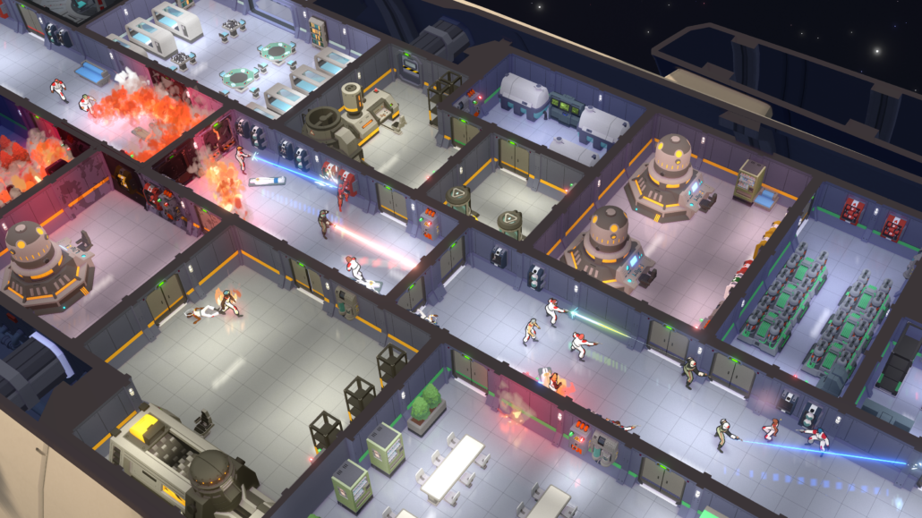 - Manage the chaos across multiple decks, which can be outfitted with utilities, luxuries, defenses, and resource production chains. Create corridors to design optimal resource chains and build hot tubs to destress and generate camaraderie among crewmates. Build greenrooms onboard to farm needed supplies, and react to threats as electrical storms strike, fires rage, and hull breaches send a crew member or two into the furthest reaches of space.